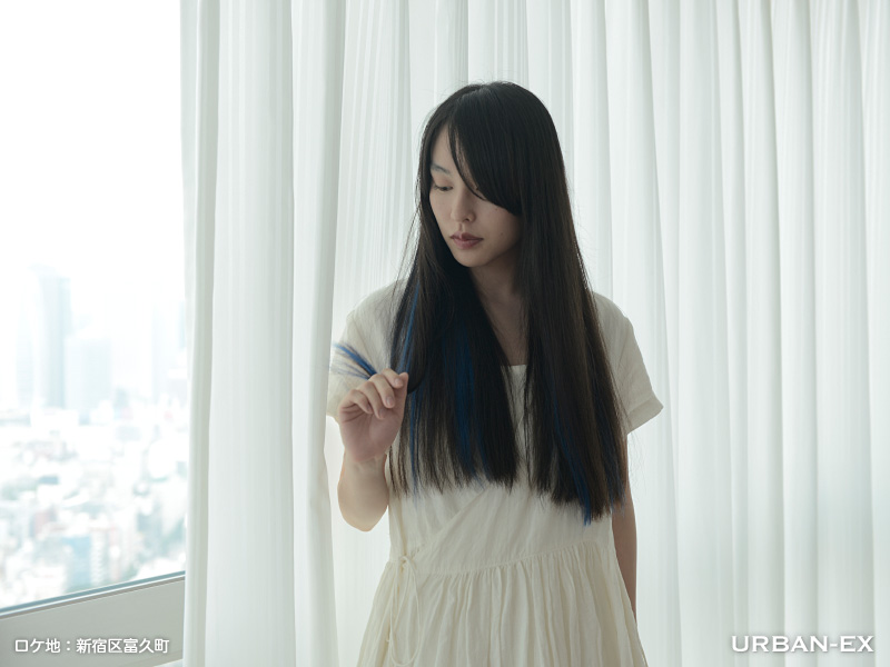 今注目のインナーカラー。ワンカラーデザインのロングをエクステで表現してみました。ハイトーンカラーを自毛に施すと髪の毛が傷んでしまい元に戻すのも大変、でもシールエクステなら安価でしかも自由な期間だけ楽しめます。人毛100%で装着も違和感なく自然な仕上がり。(使用色/ジャパンブルー)