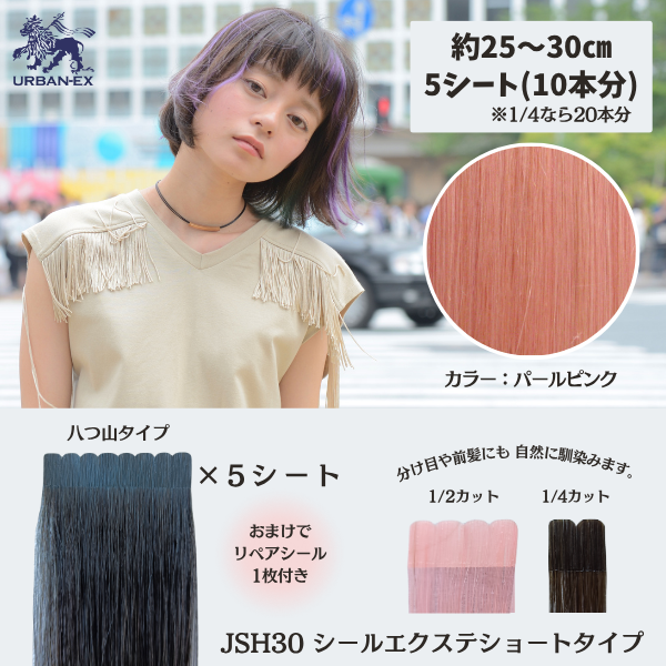 シールエクステ/パールピンク/27cm~30cm/5シート(10本分)/高級人毛100%/リペアシール1枚付き ¥1,496(本体価格¥1,360) |
