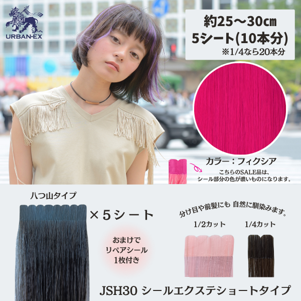 シールエクステ/シャインレッド/27cm~30cm/5シート(10本分)/高級人毛100%/リペアシール1枚付き ¥1,496(本体価格¥1,360) |